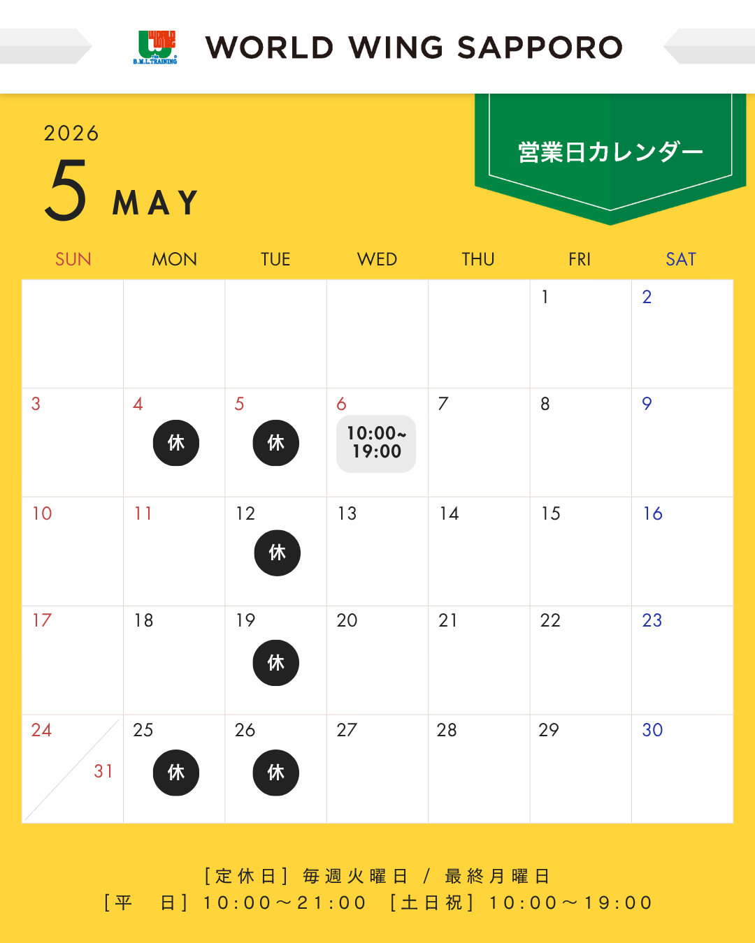 5月の休館日は画像からご確認くださいませ。